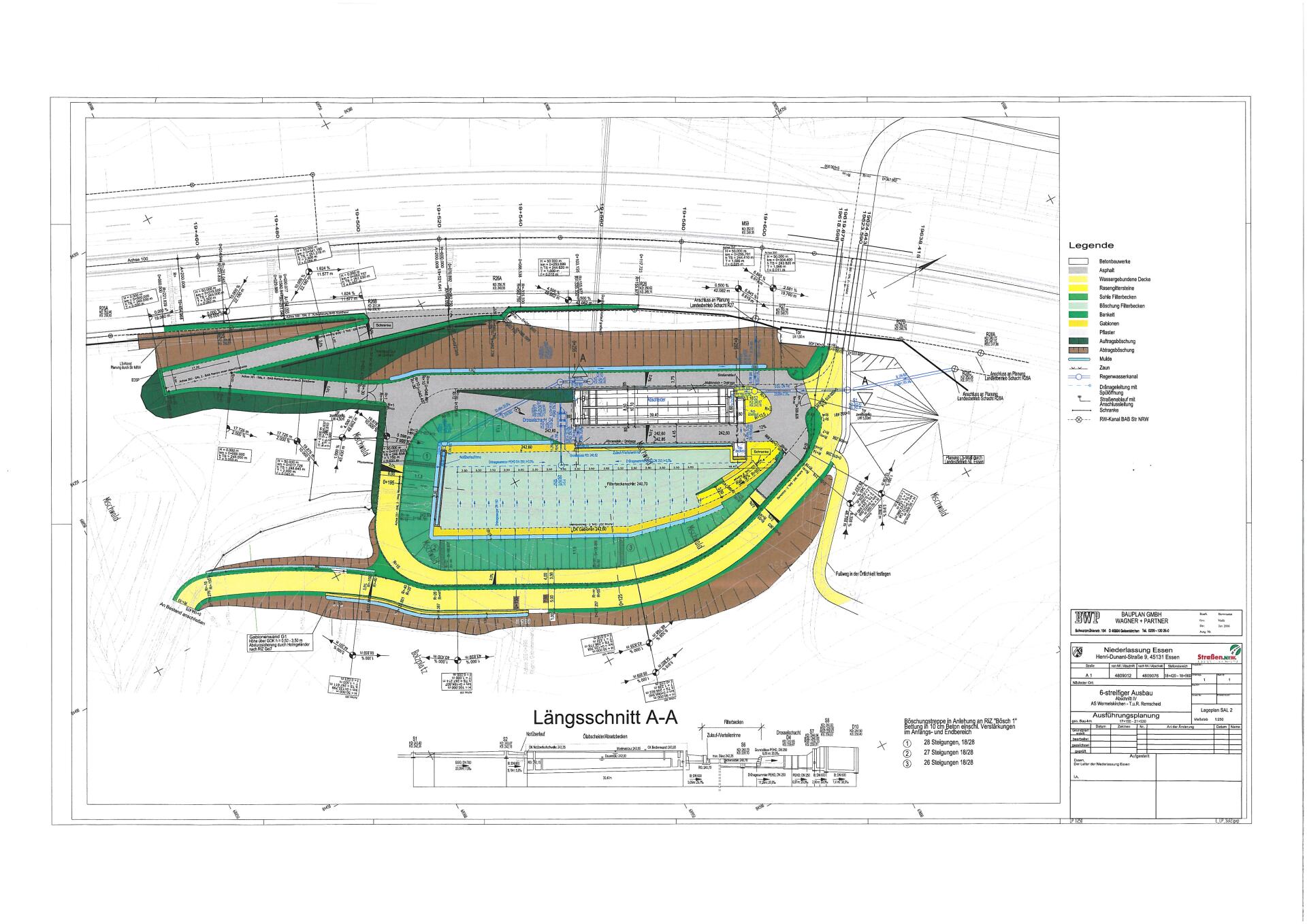 Das künftige Niederschlagswasser von den befestigten Fahrbahnflächen und Einschnittsböschungen sowie den zugeordneten Geländebereichen wird über Straßeneinläufe und Sickermulden gesammelt und weiter über die vorgeschalteten Sicherungsanlagen mit quantitativer / qualitativer Schutzvorkehrung, kombiniert aus Regenrückhaltung, Absetzbecken, Ölabscheider und Bodenretentionsfilterbecken (BFB) in den „Bollinghauser Bach“ (E1 über SAL 1) bzw. „Heintjesbach“ (E2 über SAL 2) eingeleitet.
