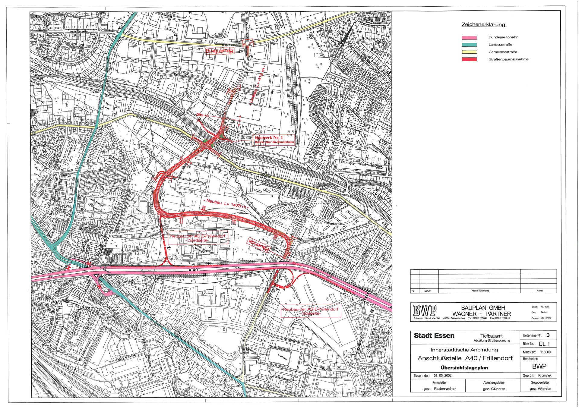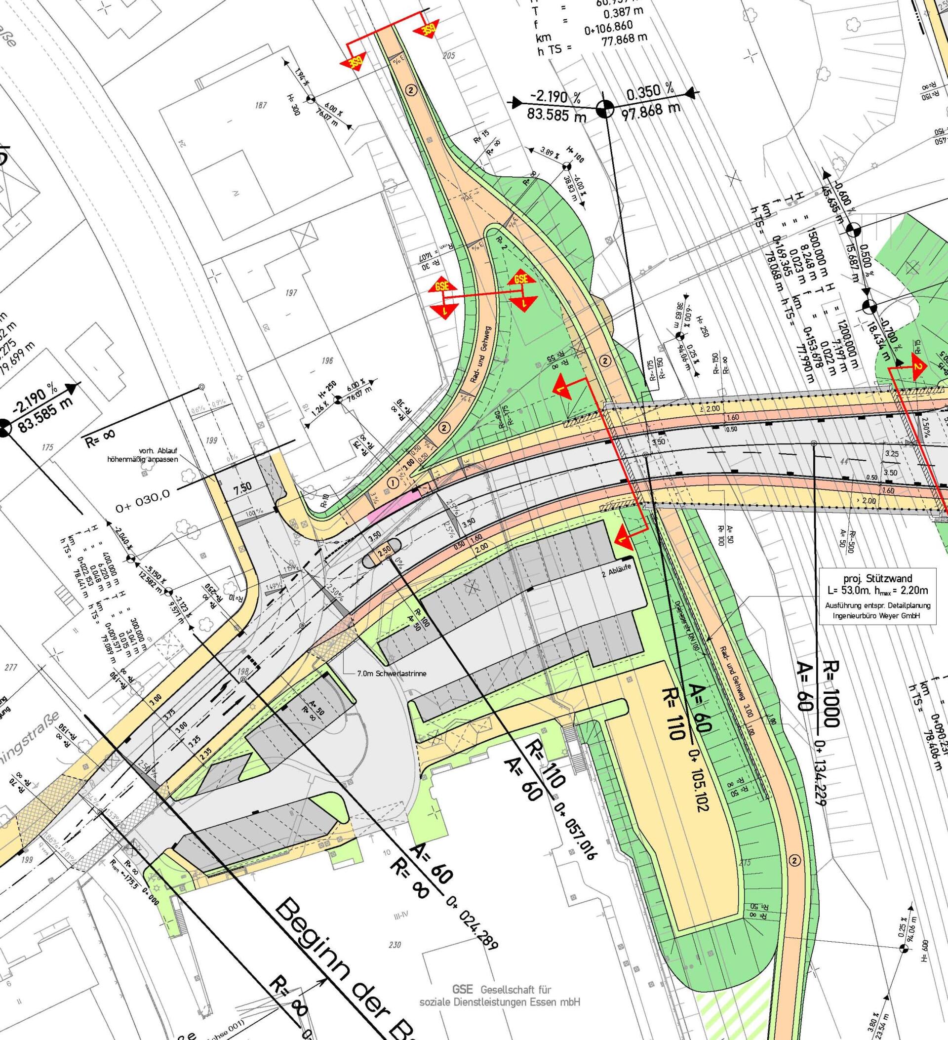 Die Planung der Verkehrsanlage und des neuen Überführungsbauwerks über die DB-Strecke Essen HBF - Essen-Kray Süd wurden mit einem anderem Ingenieurbüro abgestimmt.